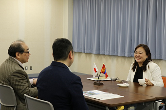 On 2nd April 2025, Togos Galbadrakh, Chief Executive Officer of New Mongol Academy, visited Akita University to pay a courtesy visit to Takeshi Gotoh, Director in Education, International and Information and Hikari Fujii, Vice President of Akita University.